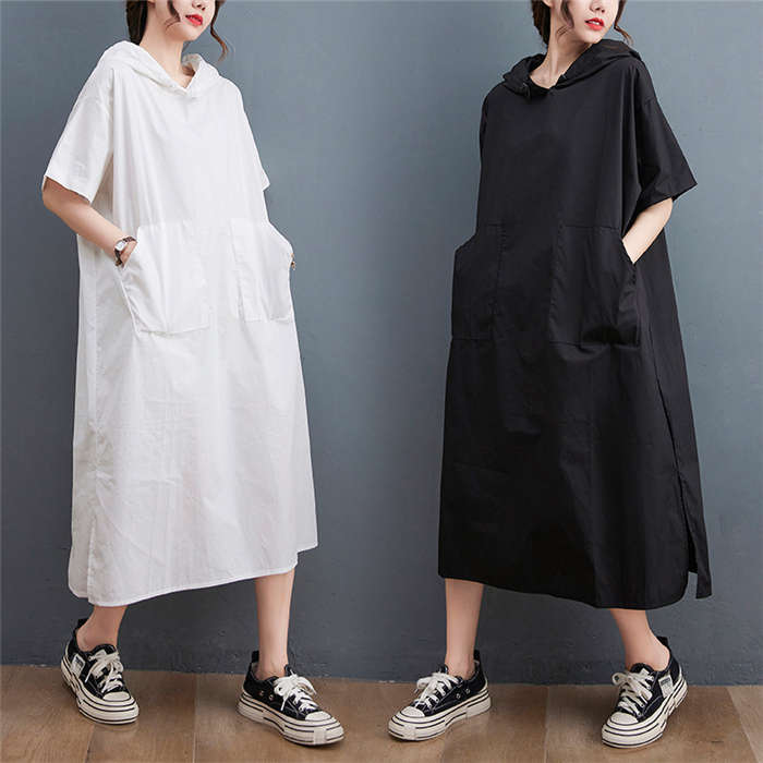 楽天市場 ワンピース パーカーワンピース 半袖 夏 レディース ロングワンピース フード付き パーカー カジュアル スリット Tシャツワンピース フード スエット スウェット トレーナー カジュアル ミディアム ロング ビッグシルエット 大きいサイズ ゆったり 体型カバー
